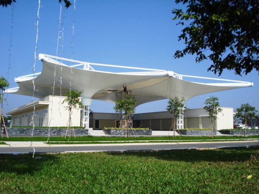 本公司的膜結構建筑風格獨特,藝術性強,具有濃厚的現代氣息,力學特性好,光學熱學性能優,阻燃又自潔,工藝性能佳,成本低,工期短等優點。廣泛應用于體育場館、高速公路收費站、加油站、大型停車場、博覽會展廳、公共場所、休閑場所、景區裝飾等。